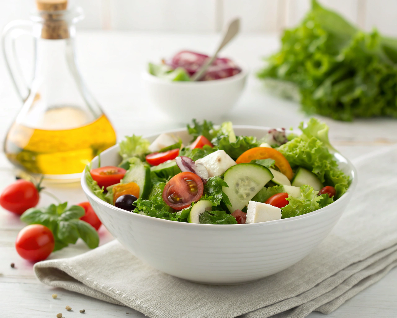 • 昼食:玄米おにぎりやそばを主食に、たんぱく質源とサラダを組み合わせてバランスを確保