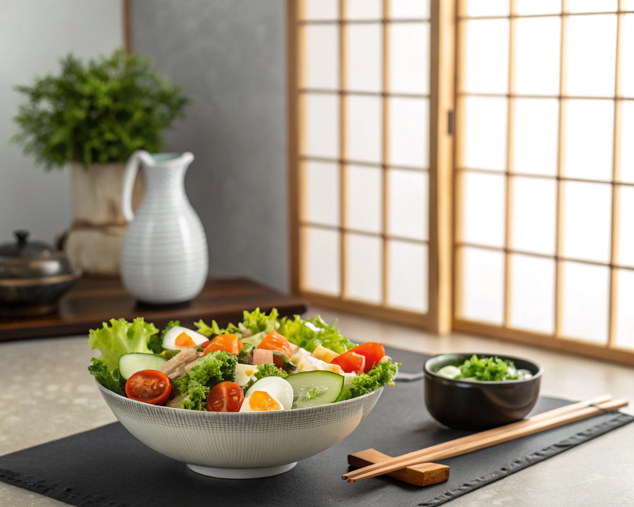 - 副菜:葉野菜のサラダ、きのこソテー、海藻サラダなど
