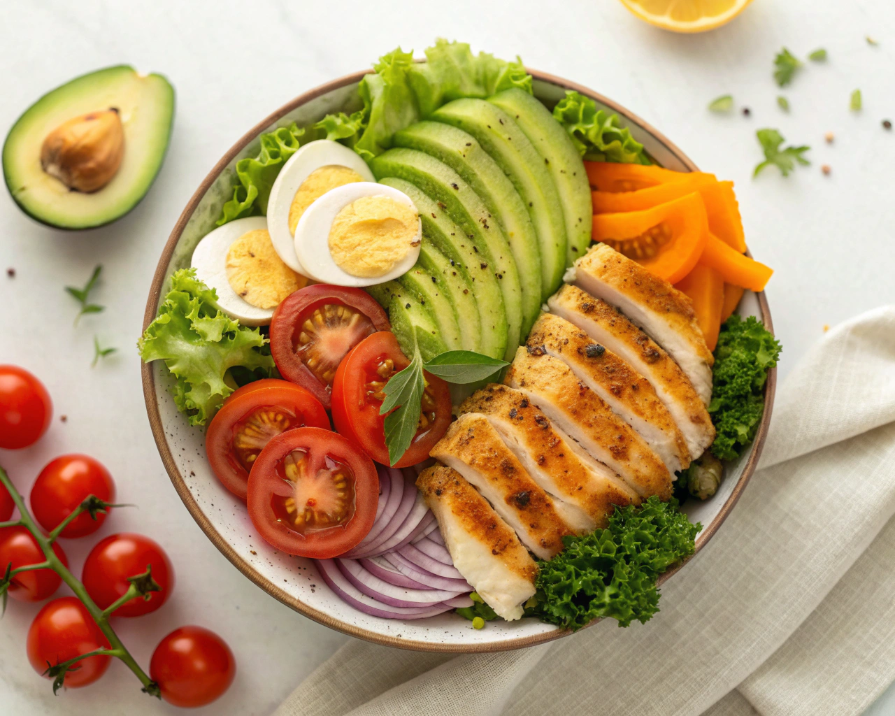 ワンプレートにすることで、主食代替・たんぱく質・野菜をバランスよく配置でき、糖質制限しながらも食事の満足度が高まります。また、外食やコンビニでも、グリルチキンやサラダ、卵料理などを組み合わせてプレート風に盛り付けるだけで、糖質オフのランチが簡単に完成します。